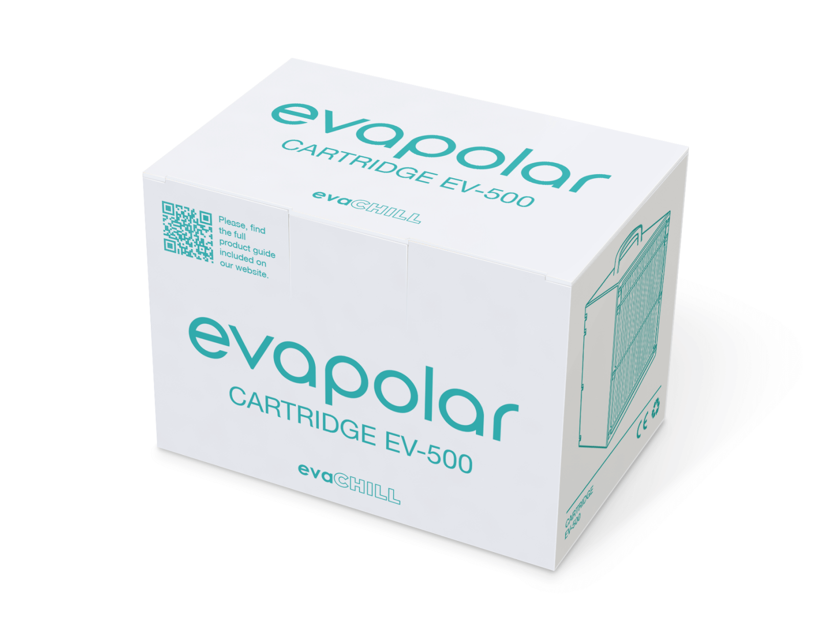 Nota por favor que este cartucho es compatible sólo con el modelo evaCHILL EV-500. Cartuchos distintos se usan con cada modelo Evapolar.