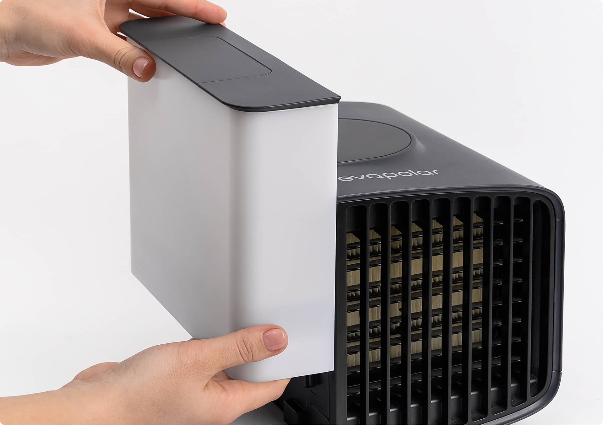 Hacemos el enfriamiento personal lo más fácil posible. Evapolar le refrescará a usted con el aire húmedo y frío, así que puede concentrarse en las cosas importantes dondequiera que sea.