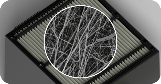 Las almohadillas de nanofibra del interior del cartucho absorben una inmensa cantidad de agua del depósito. Cuando el aire caliente pasa a través de estas almohadillas, las moléculas de agua de la superficie del cartucho se evaporan, lo que reduce su temperatura.